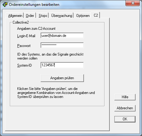 Signale und Stops direkt an die Collective-2-Plattform weiterleiten.