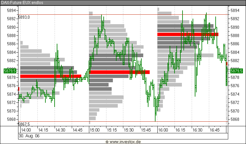 Durch Histogramme erhalten Sie eine grafische Darstellung der Verteilung von Daten in bestimmten Kursbereichen. Es lässt sich damit zum Beispiel veranschaulichen, wie viel Volumen jeweils auf verschiedenen Kurslevels in einem bestimmten Zeitbereich stattfand. So lassen sich unter anderem Widerstands- und Unterstützungszonen finden, genauso wie Zonen, in denen sich die Kurse ohne größere Umsätze bewegen.