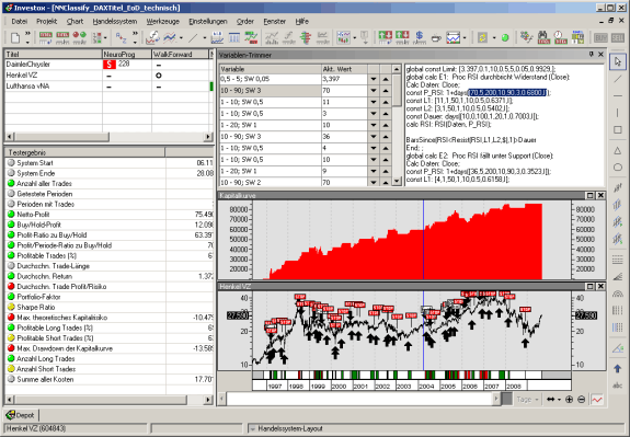 Neuartige Indikatoren wie die Neuronale Klassifizierung (wahlweise mit Walk Forward) zur Entwicklung von mechanischen Handelsstrategien.